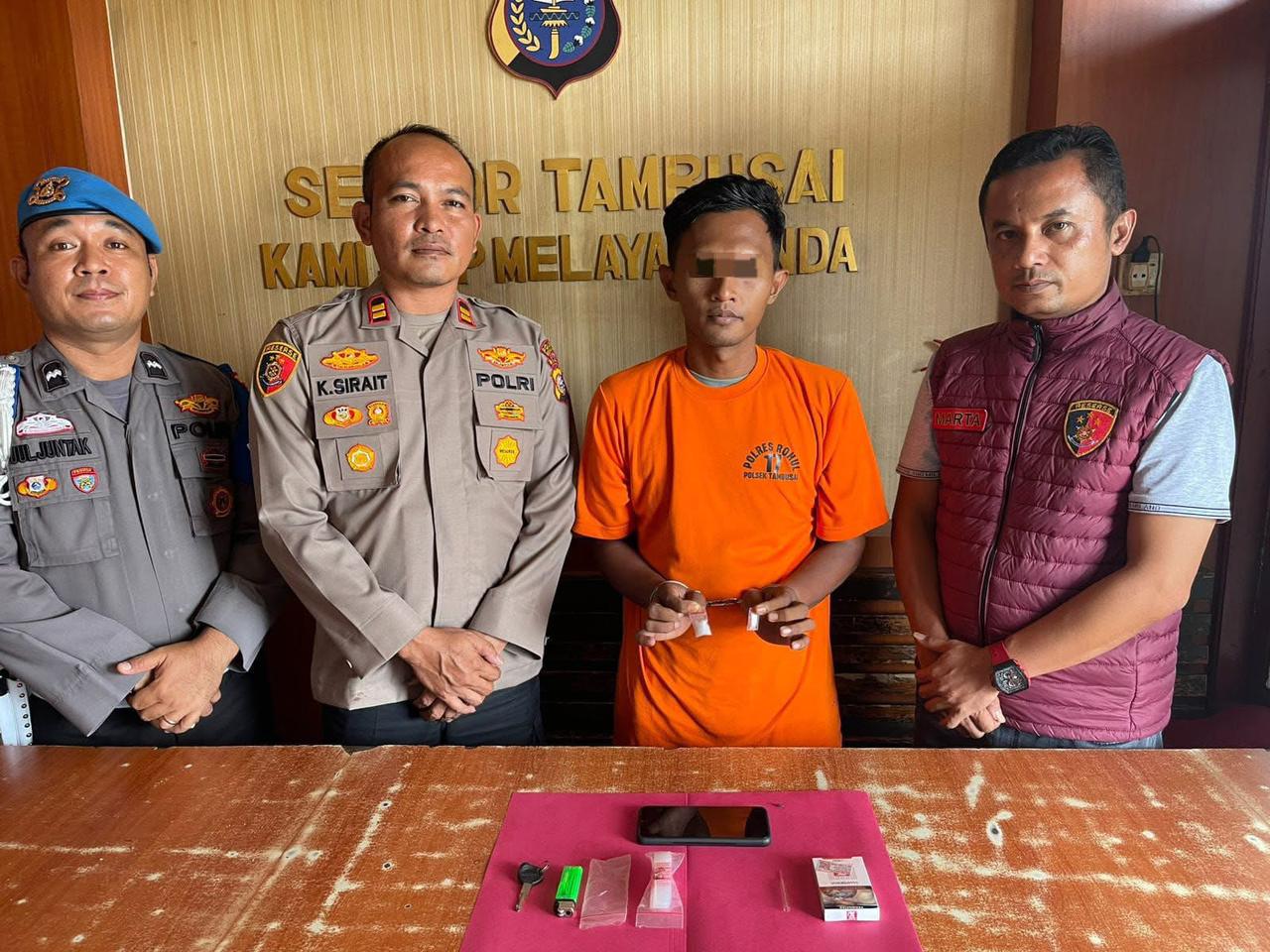 Kapolres Rokan Hulu AKBP Emil Eka Putra, S.I.K, M.Si melalui Kapolsek Tambusai IPTU Kristian Hadinata Sirait, S.E didampingi Paur Humas Polres Rohul IPDA S. Marbun, S.H menyatakan bahwa Penangkapan ini berawal dari informasi masyarakat tentang adanya penyalahgunaan narkotika jenis sabu di Dusun Suka Karya, Desa Suka Maju.